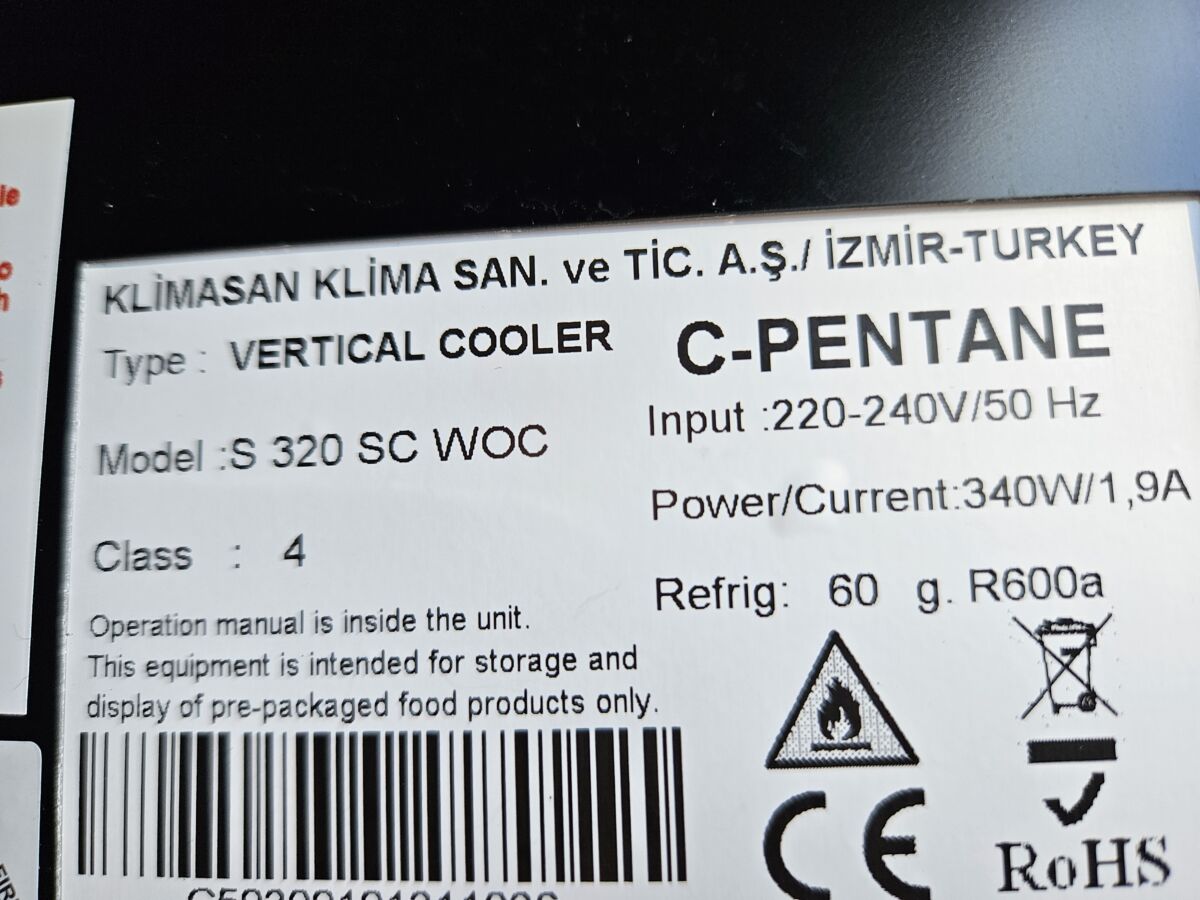 Przedmiotem sprzedaż jest używana witryna chłodnicza typu SLIM szerokość 45cm renomowanej tureckiej firmy KLIMASAN model S 320 SC SLIM WOC wersja z płaskimi szklanymi drzwiami.